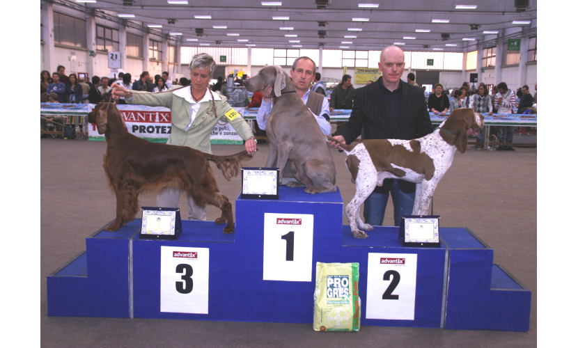 Jumior Hunter / Campione Italiano di Bellezza / Campione Internazionale di Bellezza / Campione Riproduttore / MIGLIOR COPPIA D’EUROPA (con Maybe) / MIGLIOR COPPIA ASSOLUTA DEL MONDO (con Maybe) 2008 - Stoccolma / MIGLIOR COPPIA ASSOLUTA DEL MONDO (con Dalma) 2009 - Bratislava / MIGLIOR COPPIA DI WEIMARANER DEL MONDO (con Dalma) 2010 - Parigi